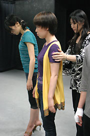 ポージングレッスンでは現役モデルの方を講師にお呼びしてカメラの前に立ったときの立ち姿を学びました。足が長く見えるポーズや、基本姿勢、笑顔のチェック、スタイルが良く見える服の選び方などなど。真っ直ぐに立つということだけでも集中力と見せる意識が必要だと感じた生徒が多いようです。