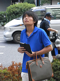 暑い日には役者に日傘をさしたり、団扇で風をおくったり、とにかく役者を一番に考える。
