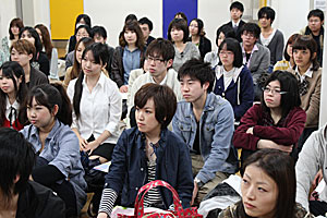 身近な新人声優である卒業生のトークに、真剣に耳を傾ける在校生。
