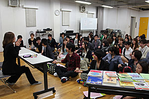 主任講師・荘真由美先生のあいさつや上級生からのサークルのお誘い、オプションクラスのパフォーマンス紹介など、楽しい入所式となりました。